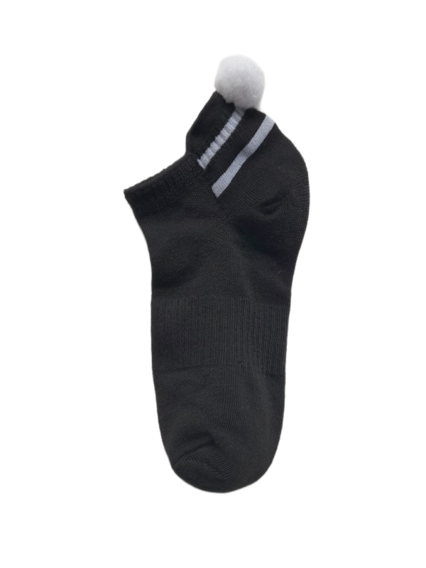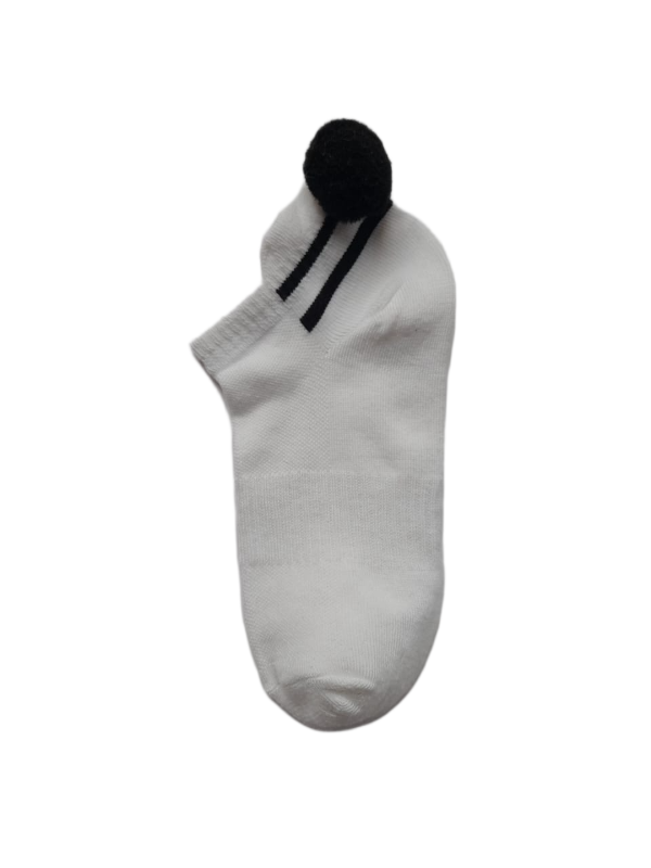 Pompón afelpado (composición 100% Poliéster), aplicado sobre una media diseño soquete con talonera reforzada (composición 75% Poliéster, 5% Spandex y 20% Algodón).