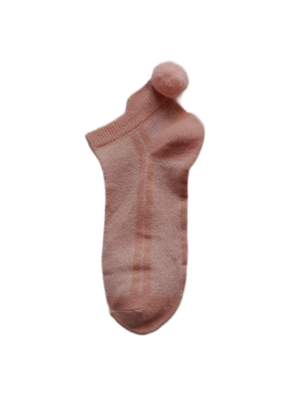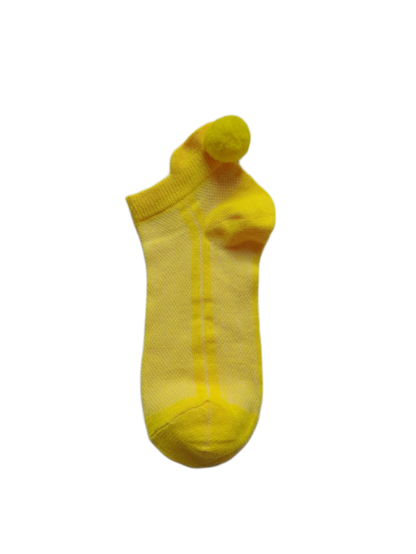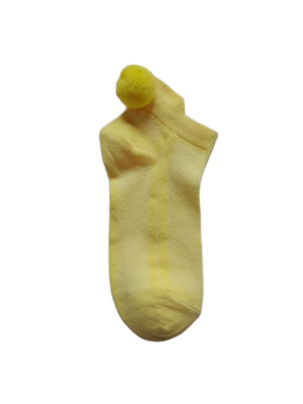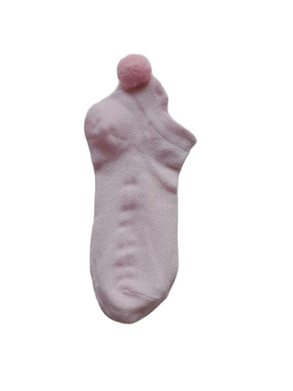 • Pompón afelpado (composición 100% poliéster), aplicado sobre una media diseño soquete con talonera reforzada (composición 80% Algodón y 20% Spandex)